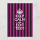 Carte Postale Personalisé KEEP CALM Votre Texte Fuchsia Stripes