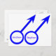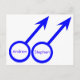 Cette belle carte postale est conçue pour les hommes gais. Il comporte deux symboles mâles bleus côte à côte. L'arrière - plan est blanc et il y a du texte bleu personnalisable à l'intérieur de chacun des symboles pour mettre des noms.