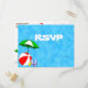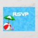 Un modèle de carte postale RSVP sur mesure de plage ou de piscine avec un ballon de plage et un parapluie sur un côté et de la chambre pour votre adresse de retour et des informations d'invité sur le dos en lettres amusantes. Customisez-le pour modifier les polices, le dimensionnement et plus encore, même vous économisez la conception pour plus tard.