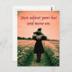 Adorable, confiante petite sorcière dans un champ plein de pissenlit souhaite encourager tout le monde à "juste ajuster votre casquette et aller de l'avant" quand la vie commence à se soulever un peu trop dur.