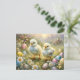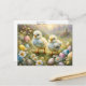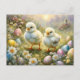 Carte Postale Petits poussins dans la prairie avec oeufs de Pâqu