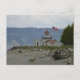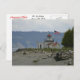 Le phare de Point No Point, près de Hansville WA, garde la pointe nord de la péninsule de Kitsap depuis 1879. Cette photo montre une vue sur une plage de sable avec du bois flotté au premier plan, une bande d'herbe de plage au milieu de l'image, avec les bâtiments blancs au toit rouge du phare et sa tour de squat juste au-delà de l'herbe. Un drapeau américain coule dans le vent, contre un arrière - plan de bleu-vert, de collines boisées et de ciel bleu clair. Copyright Gail Storrs 2007.