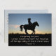 Belle carte postale personnalisée représente un cheval et cavalier et présente Bible Verse Philippians 3:13-14, Oublier le passé... Je presse vers la marque pour le prix de la haute vocation de Dieu en Jésus Christ.Le salut arrière peut être personnalisé._