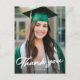 Avec un script simple "merci" dans un style moderne écrit à la main, cette photo graduation remerciement carte postale est la façon parfaite pour votre diplômé de remercier les invités pour les cadeaux et le soutien. Doté d'une photo verticale à l'avant avec un type blanc "merci", et un nom ce design a également de la place sur l'arrière pour une note et un script de signature. Cela peut aussi être laissé vide pour que le grand puisse écrire un merci à la main. C'est un design élégant de fin d'études parfait pour les filles et les garçons et il fonctionne bien pour les diplômés du secondaire et de l'université. Trouver d'autres styles dans la collection de Lea Delaveris Design.