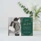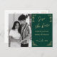 Annoncez votre date de mariage dans le style avec notre élégante enregistrer la date carte postale. Avec son design Art Déco en or et en calligraphie sur un arrière - plan vert, cette carte attire immédiatement l'attention et apporte une touche de sophistication à votre faire-part. Customisez-le avec une photo de vous et de votre autre significatif pour une touche plus personnelle. Commandez maintenant pour donner le ton à votre mariage de rêve.