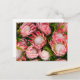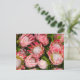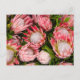 Cette carte postale présente un groupe de fleurs de protéa roses.
