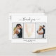 Une carte postale élégante et simple en Merci mariage de la mariée et du marié, personnalisée avec votre propre photo. Ajoutez 3 de Vos photos mariages, taille verticale, date du mariage, vos noms et la note de remerciement. Un arrière - plan blanc chic avec du texte noir et un cadre blanc. Le texte : Merci sur l'avant et vos noms sur l'arrière sont écrits avec une écriture manuscrite stylisée.