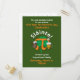 Carte postale PI AND BEER JOUR DE LA SAINT PATRICK Invitation amusante et élégante montrant un dessin animé de trois bières, symbole Pi combiné avec shamrock, et Sláinte! (Santé) dans le texte courbe en haut. Le texte à l'avant et à l'arrière est entièrement personnalisable pour que vous puissiez le remplacer par votre propre salutation, nom de l'événement, hôtes, date et heure, lieu et détails RSVP. Invitation combinée idéale pour les événements Pi Day et St Patrick's Day.
