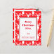 Carte postale de Noël rouge et blanc avec rennes et boulettes sur arrière - plan rouge. . Idéal de l'envoyer à votre ami ou membre de votre famille ce Noël. Texte personnalisé