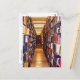 Cette carte postale vous emmène à pied dans un long couloir de livres dans les piles d'une immense bibliothèque. Les lumières vives révèlent des épines de livres dans un kaléidoscope de couleurs : rouge, vert, bleu, noir, blanc, or, brun, violet. L'angle symétrique crée un design géométrique qui semble conduire à l'infini. Les reflets sur le sol fraîchement ciré contribuent à la motif générale.