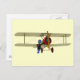 Pilote de caricature unisex posant avec son vieux partenaire de confiance, un biplane Sopwith Camel.