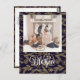 Envoyez des voeux de vacances personnalisables et personnalisés à vos amis, collègues et famille dans des cartes de style simple, chic, élégant et moderne design photo festif, naturel minimaliste! Une belle calligraphie dorée de cadres " Bienheureux " sur le fond de votre photo en face. Vous trouverez ci-dessous votre message de bienvenue personnalisé de votre nom de famille dans la typographie moderne. Reverse pour révéler un bel arbre de Noël doré feuilles & flocons de neige en bleu marine foncé arrière - plan.