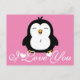 Graphique de pingouin noir et blanc mignon avec un arrière - plan rose fuchsia chaud brillant que vous pouvez changer la couleur avec un texte fantaisie disant "Je t'aime" en blanc avec les coeurs. Idéal pour toutes les occasions et surtout Valentines pour cette personne spéciale dans votre vie.