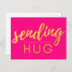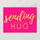 Envoi d'une carte postale d'accolade socialement lointaine dans un rose vif et de l'or.