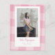 Cette graduation est jolie en plaid rose avec une seule photo et plaid assorti sur le dos.