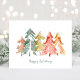Souhaitez à vos amis et famille des vacances heureuses avec cette belle aquarelle abstraite de pins en vert muet, rouge, or et orange. Vous pouvez facilement personnaliser votre signature à l'arrière.