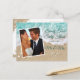 Votre photo spéciale de fiançailles, de vacances ou d'été photo et le dire amusant et amusant, Sandy Toes Salty Kisses bientôt être Mr. & Mrs accents ce mariage Enregistrer la date Carte postale sur un arrière - plan d'eau turquoise, de sable de plage, de coquillages et d'étoiles de mer.Le dos de cette Enregistrer la date La carte postale est décorée davantage de sable de plage, coquillages et étoiles de mer. Si d'autres éléments de coordination sont nécessaires pour votre mariage, contactez-nous à l'adresse prettyfancyinvites@gmail.com avec votre demande.