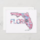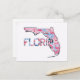 Carte Postale Plan d'état de Floride Forme Flamants roses roses