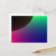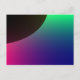 Cette carte postale présente une image numériquement qui ressemble au croissant d'une planète sombre entourée d'une aurore cosmique de vert, bleu, violet et rose.