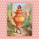 L'Amphora d'or, une illustration anthropomorphique charmante et décalée, présente une femme encastrée dans un vase classique entouré de colonnes grecques. La carte de commerce victorienne améliorée affiche la texture brodée typique de l'impression colorée de cette époque. Il est parfait pour la décoration de cuisine et salle à manger, carnets, cartes et produits alimentaires.