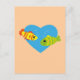 Deux poissons colorés en amour sur le coeur bleu arrière - plan.