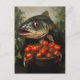 Un homme avec un poisson pour la tête tient une corbeille remplie de tomates fraîches de l'art imaginaire surréaliste du jardin