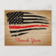 Ligne rouge mince - drapeau américain dans les couleurs du drapeau de pompier, design en détresse. Ce merci aux pompiers est parfait pour remercier un pompier, ou les services d'incendie. DROIT D'AUTEUR © 2020 Judy Burrows, Black Dog Art - Tous droits réservés. Carte postale Rustique mince Red Line Firefighter Merci
