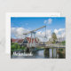 Peinture de la rue et pont traditionnel hollandais levant en bois dans le village de pêcheurs de Volendam, Hollande du Nord, Pays-Bas