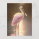 Poêle à bec rosé debout dans l'eau avec une lumière chaude brillant sur l'oiseau rose.