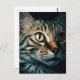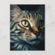 El diseño muestra un primer plano sorprendente y dramático de la cara de un gato, que captura la esencia de su ojo grande y expresivo .