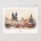 Carte postale avec marché de Noël de Prague au crépuscule, ville médiévale pittoresque en République tchèque