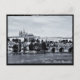 Carte postale : Prague - vue sur une partie historique de la ville sur la rivière Vltava, avec la cathédrale Saint-Vitus dominante sur la colline, soudoyée par "Hradcany" - Château de Prague en noir et blanc. Bâtiments historiques sur les rives de la rivière, où le zoo de Prague est situé. Travel/Architecture series - Prague, République Tchèque. Photographie originale/Art/Design par work4dream.