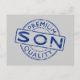Une excellente idée cadeau de TeesForYourFamily.com! Ce joli design de style timbre le rend officiel — ce fils est de la qualité Premium! Réalisée dans une couleur bleue épaisse et affligée pour un look vintage, cette conception originale est l'idée cadeau unique pour doting parents de fils et leurs enfants de qualité supérieure haut de gamme ! Vous pouvez totalement customiser ce cadeau ! Déplacez le timbre autour, changez la couleur ou le style de l'arrière - plan, ajoutez votre texte ou vos images — faites-le vous-même !