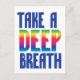 Prenez un message inspirant de Deep Breath pour promouvoir la relaxation et rappeler à quelqu'un de respirer et de rester calme et centré. Peut être envoyé comme carte d'encouragement pour quelqu'un qui a des difficultés. Design typographique avec le bleu et le mot "profond" dans un mélange de couleurs arc-en-ciel.