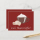 Invitation un ami pour le café avec cette belle carte postale bordeaux à thème café. En affichant une tasse de café avec des biscuits sur un arrière - plan rouge, "Let's Have Coffee" est écrit en italique blanc. Commandez les vôtres dès aujourd'hui ! Oeuvre créée par : AMBillustrations http://www.etsy.com/shop/AMBillustrations/