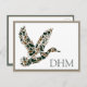 This monogrammed postcard features a flying mallard duck in camouflage print of brown and dark green. Personalize the matching green monogram with your choice of initials.