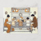 Un vieux livre. La famille qui prie avant le dîner. Une table simple avec des bancs de chaque côté pour les enfants et des chaises régulières à chaque extrémité pour Mère et Père. Situé devant une cheminée