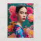 Image d'une princesse avec une tiare bleue. Il s'agit d'une oeuvre d'art générée par l'IA avec un thème floral.