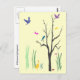 Cette carte postale crée une ambiance printanière colorée et capricieuse. Les oiseaux volent et sont perchés dans l'arbre. Les papillons flottent dans l'air chaud. Un canard barbote dans l'herbe. Il y a même un minuscule escargot au sol.