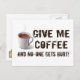 "Donne-moi du café et personne ne se fait mal !" Ceci et l'image d'une tasse chaude vapeur de café laiteux diront même à la personne la plus bête à la maison ou dans votre bureau que vous avez besoin d'un coup de cafféine ! Un proverbe drôle pour les accros du café en caractères désespérés