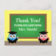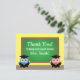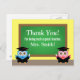 Express tes remerciements à ton professeur d'être un si grand enseignant pendant tes années d'école et dis adieu à eux quand tu auras terminé l'école avec cette carte postale mignonne et douce. Le design est composé d'une paire de chouettes, bleues et roses, en tenues de graduation et de casquettes à la craie dans leurs ailes. Le texte sur le tableau vert dit "Merci ! Pour être un si grand professeur". Personnalisez avec votre message pour enseignant.