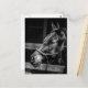 Photo en noir et blanc du profil latéral du visage d'un cheval sur une carte postale.