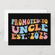 Design cool, parfait pour tout nouvel oncle. Une façon géniale d'annoncer une grossesse à votre frère ou votre beau-frère! 'Promu à oncle est 2025' une citation amusante pour chaque homme qui aime déjà sa nièce ou neveu. Donnez ceci à votre frère ou achetez cet art si vous êtes le meilleur nouvel oncle sur Terre ! Un grand cadeau pour les oncles amoureux et les frères ou les beaux-frères qui tournent les oncles.