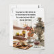 La carte postale des écritures de citation inspirante représente la nourriture sur une table avec une urne vintage en argent. Il présente la Bible Verse Psaume 23:5, "Vous préparez une table devant moi en présence de mes ennemis. Vous osez ma tête avec de l'huile ; ma tasse déborde." La prière de salutation arrière peut être modifiée ou supprimée pour une carte vierge.