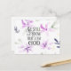 La carte postale des Écritures Inspirationnelles dépeint un magnifique jardin violet aquarelle avec des fleurs simples et des feuilles. Il présente la Bible Verse Psaume 46:10 "Soyez calme et sachez que je suis Dieu." *