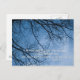 Psaume 5:3 Ma voix Te dira le matin. La photo montre un ciel bleu frappant avec des membres d'arbre et la lune.