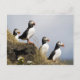 Un quatuor de mignons petits macareux sur cette falaise en Islande.