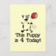 Un joli chiot 4ème anniversaire design sur T-shirts, tasses, cartes, autocollants et autres avec chiot, ballon d'anniversaire rouge et texte qui dit "Ce chiot est 4 aujourd'hui !".