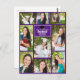 Cette carte postale moderne violet de troisième cycle avec collage photo présente vos photos préférées de 9 étudiants. Cette carte postale de fête de remise de diplômes présente une typographie blanche de classe de votre lycée ou de votre nom d'université pour la classe de 2025. Customisez les cartes postales avec votre année de graduation en dessous du casquette noir. Il comprend 2 images horizontales, 5 photos verticales et 2 photos carrés.