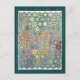 Cette carte postale présente l'image d'une courtepointe One Block Wonder avec des hexagones méticuleusement façonnés dans des tons verts, blancs et motifs floraux captivants. Le chef-d'oeuvre en patchwork dégage un sentiment de beauté tranquille et met en valeur l'art de la courtepointe.